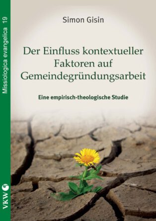 Simon Gisin: Der Einfluss kontextueller Faktoren auf Gemeindegründungsarbeit. Eine empirisch-theologische Studie, Missiologica Evangelica 19, Bonn: Verlag für Kultur und Wissenschaft, 2024, Pb., 419 S., € 34,–, ISBN 978-3-86269-299-6